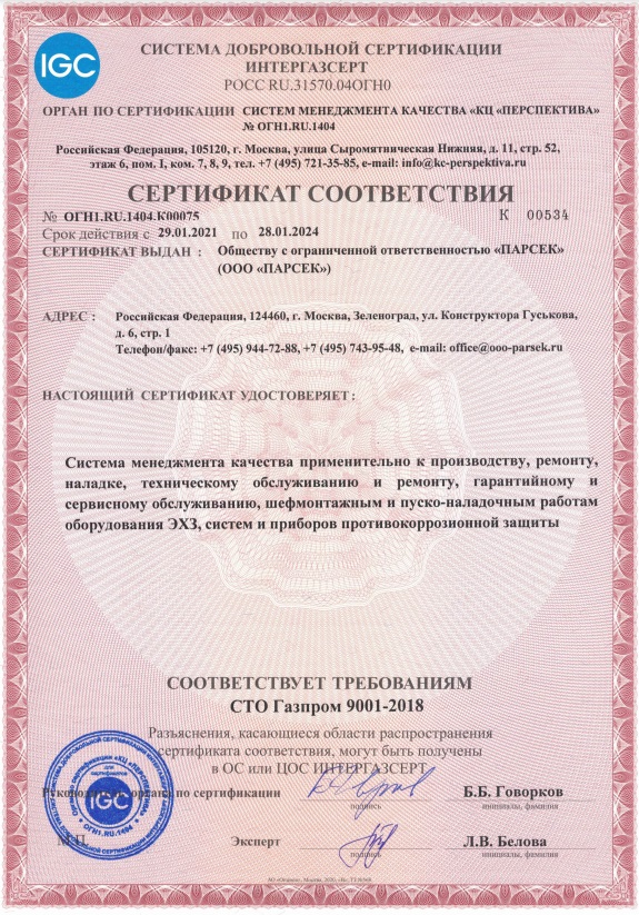 СМК Сертификат ИНТЕРГАЗСЕРТ СТО ГАЗПРОМ 9001-2018